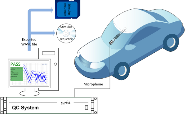 如果被测设备(此示例中为汽车音频系统)没有提供可访问的辅助信号输入接口, 则必须将激励信号序列离线传输到音频系统中。